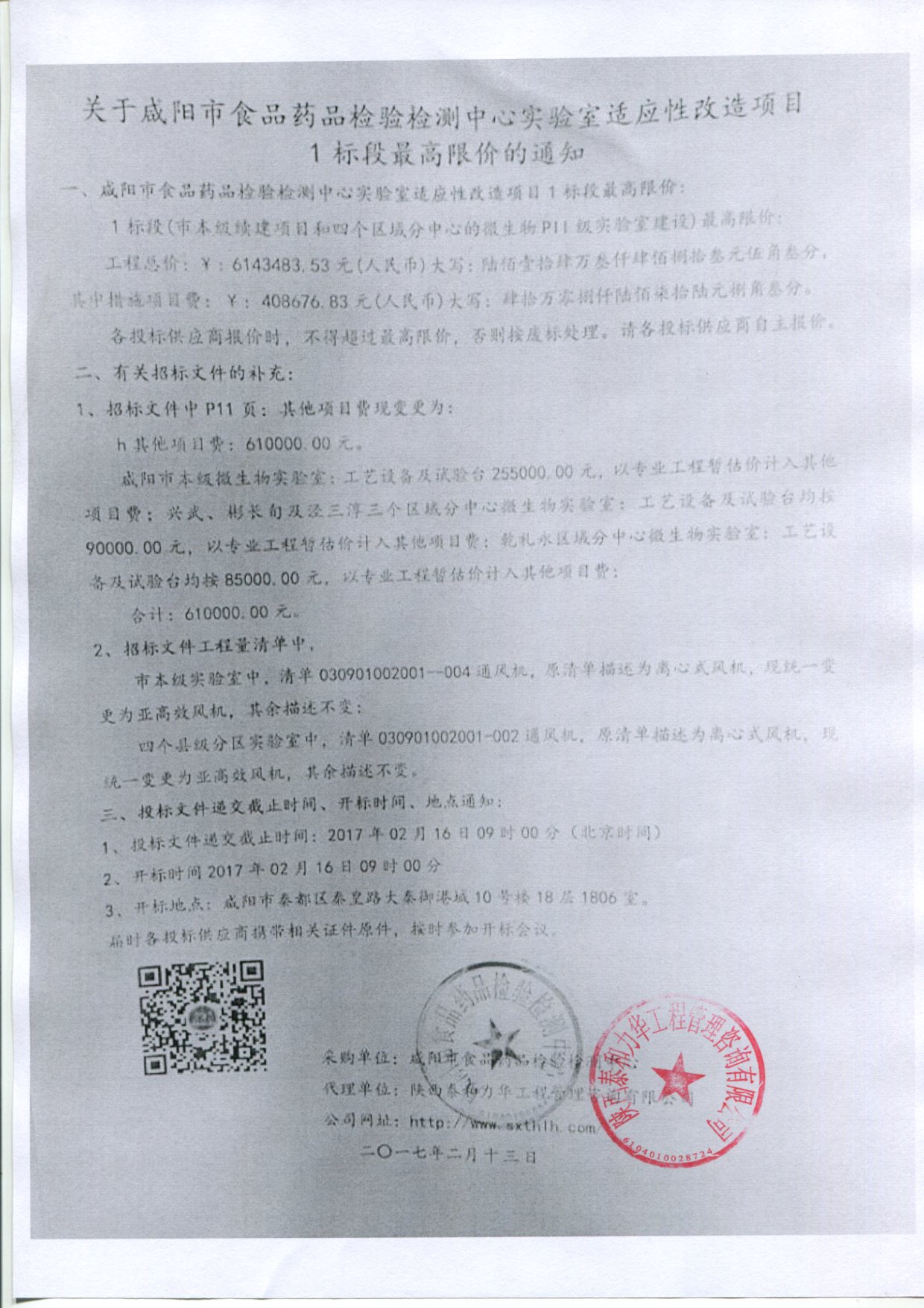 咸阳市食品药品检验检测中心实验室适应性改造项目1标段