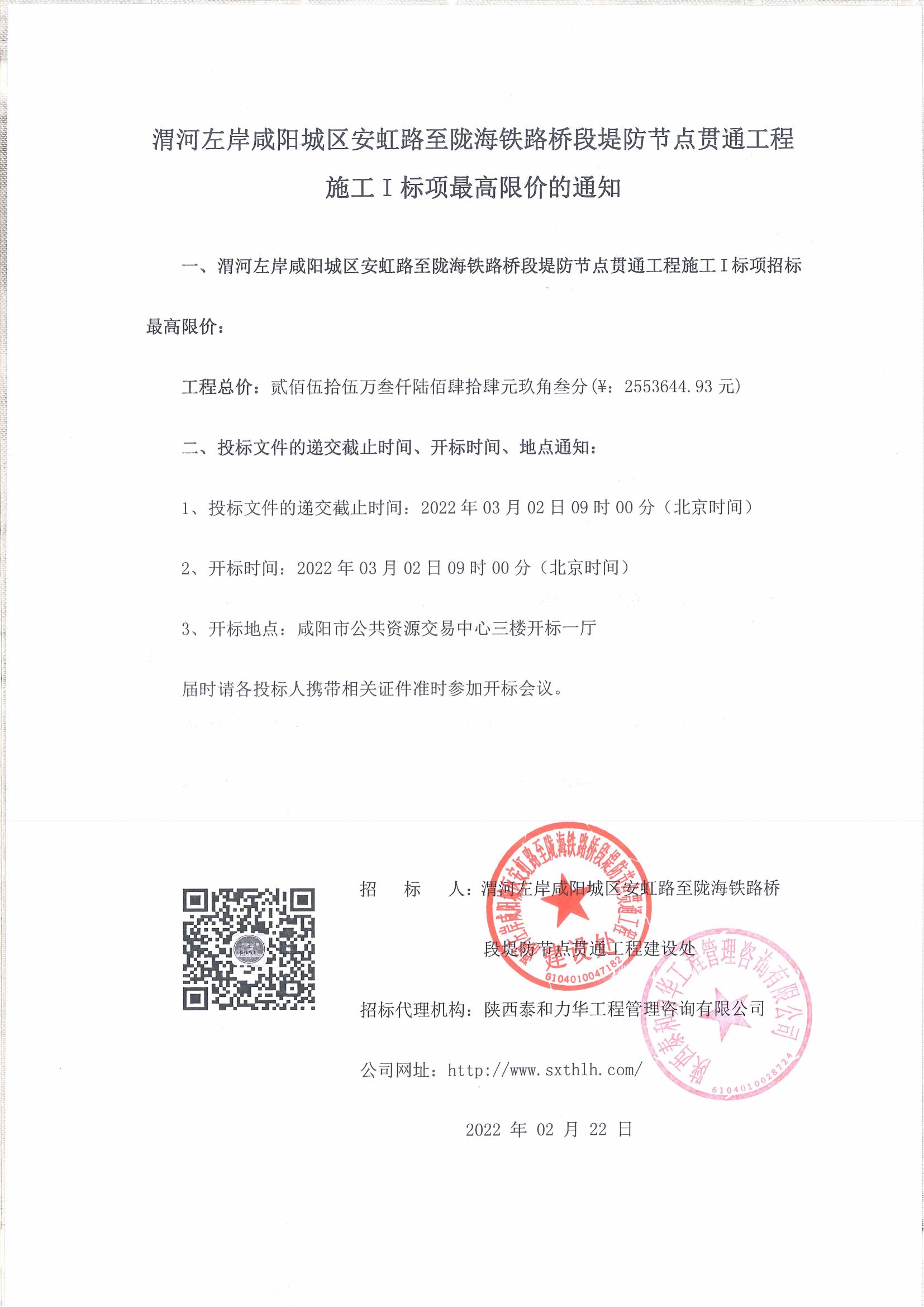 渭河左岸咸阳城区安虹路至陇海铁路桥段堤防节点贯通工程施工I标段最高限价的通知