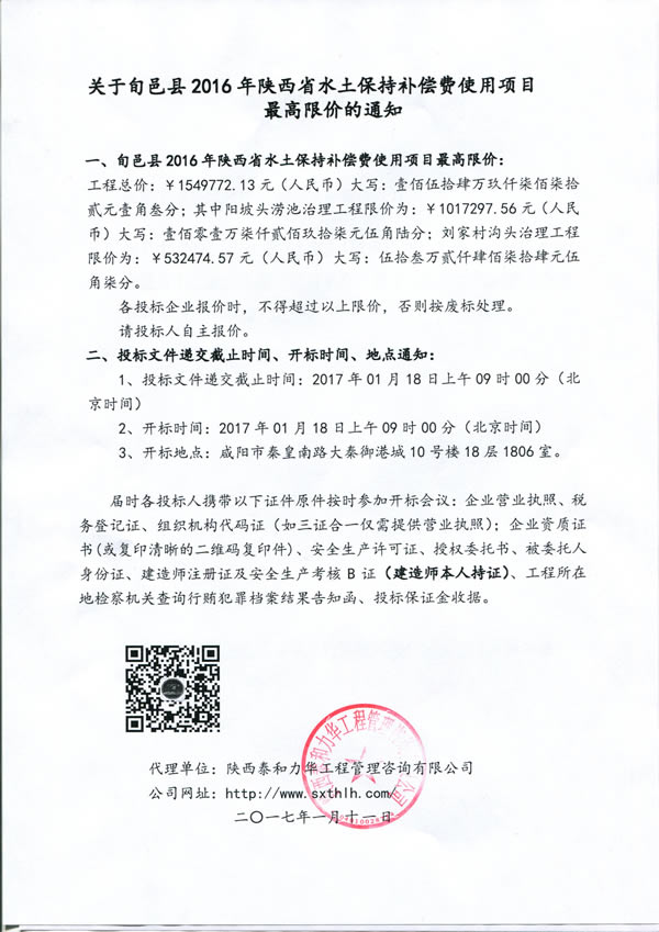 旬邑县2016年陕西省水土保持补偿费使用项目