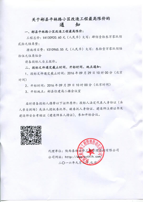 铜川市耀州区惠塬经济技术开发区新能源材料片区标准化厂房及配套基础设施建设项目排水管网工程最高限价的通知