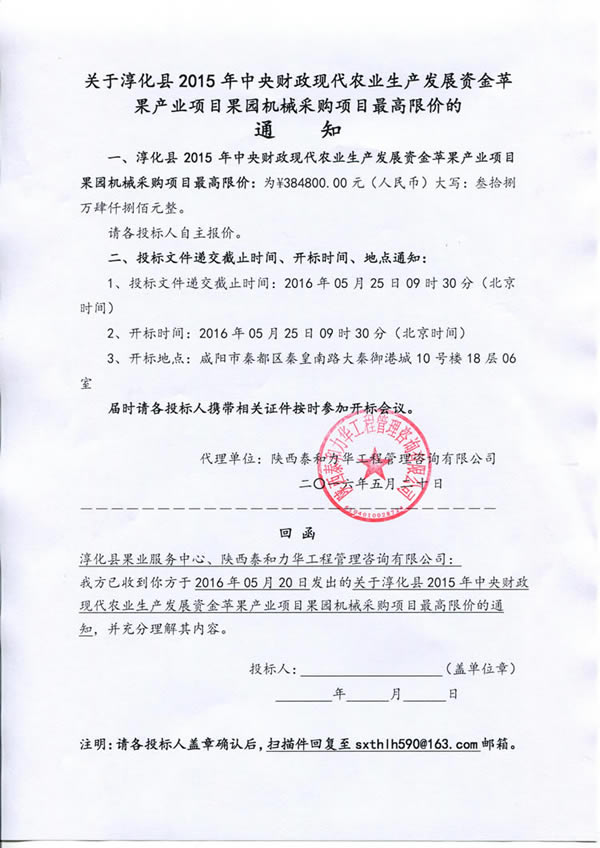 淳化县2015年中央财政现代农业生产发展资金苹果产业项目果园机械采购项目