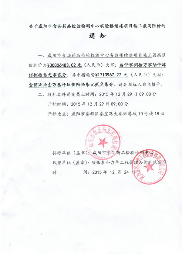 咸阳市食品药品检验检测中心实验楼续建项目