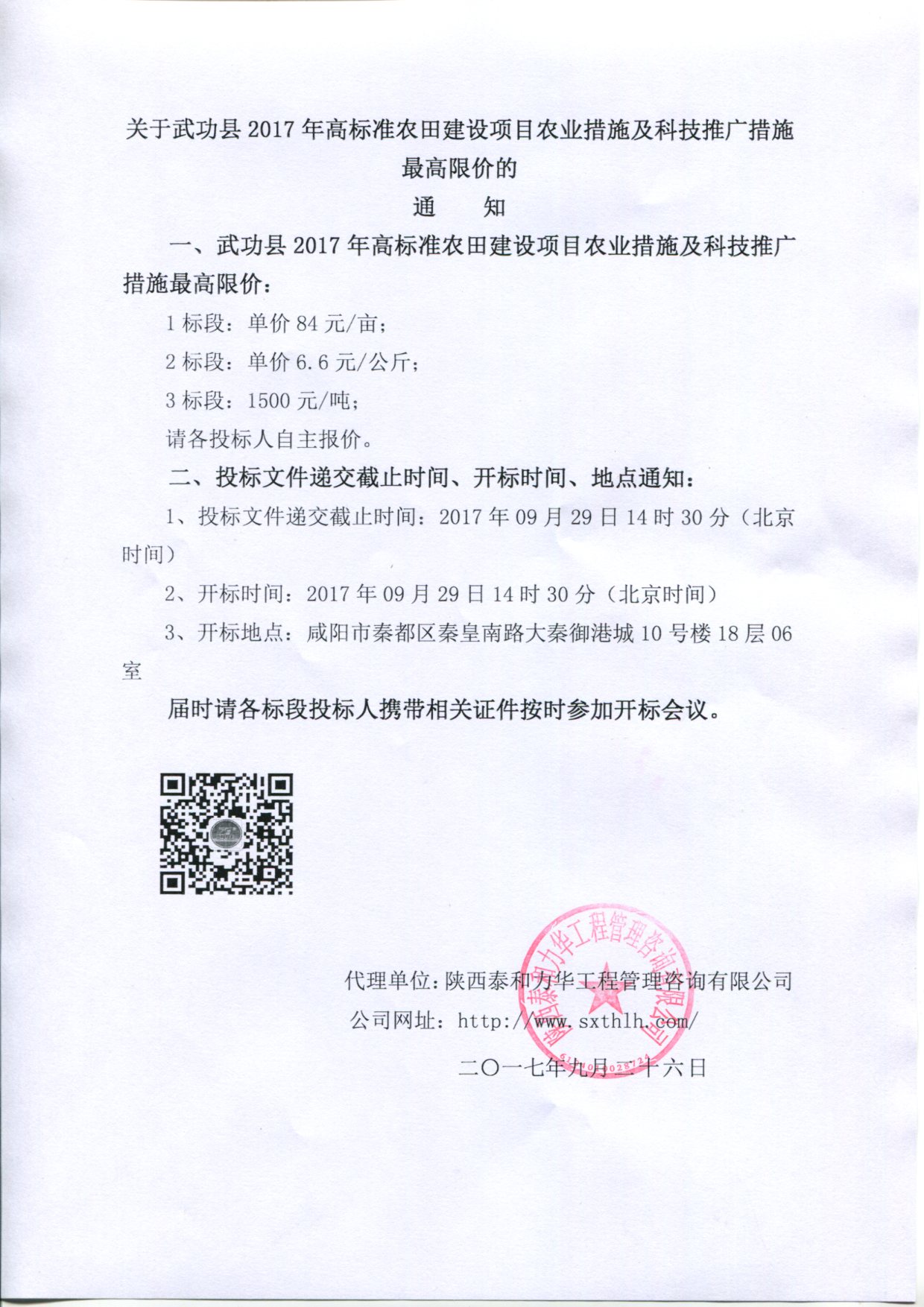 关于武功县2017年高标准农田建设项目农业措施及科技推广措施最高限价的通知
