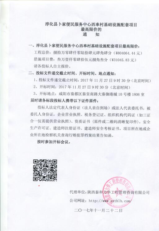 淳化县卜家便民服务中心西奉村基础设施配套项目最高限价