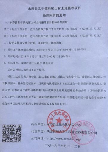 永寿县常宁镇炎家山村土地整理项目最高限价的通知