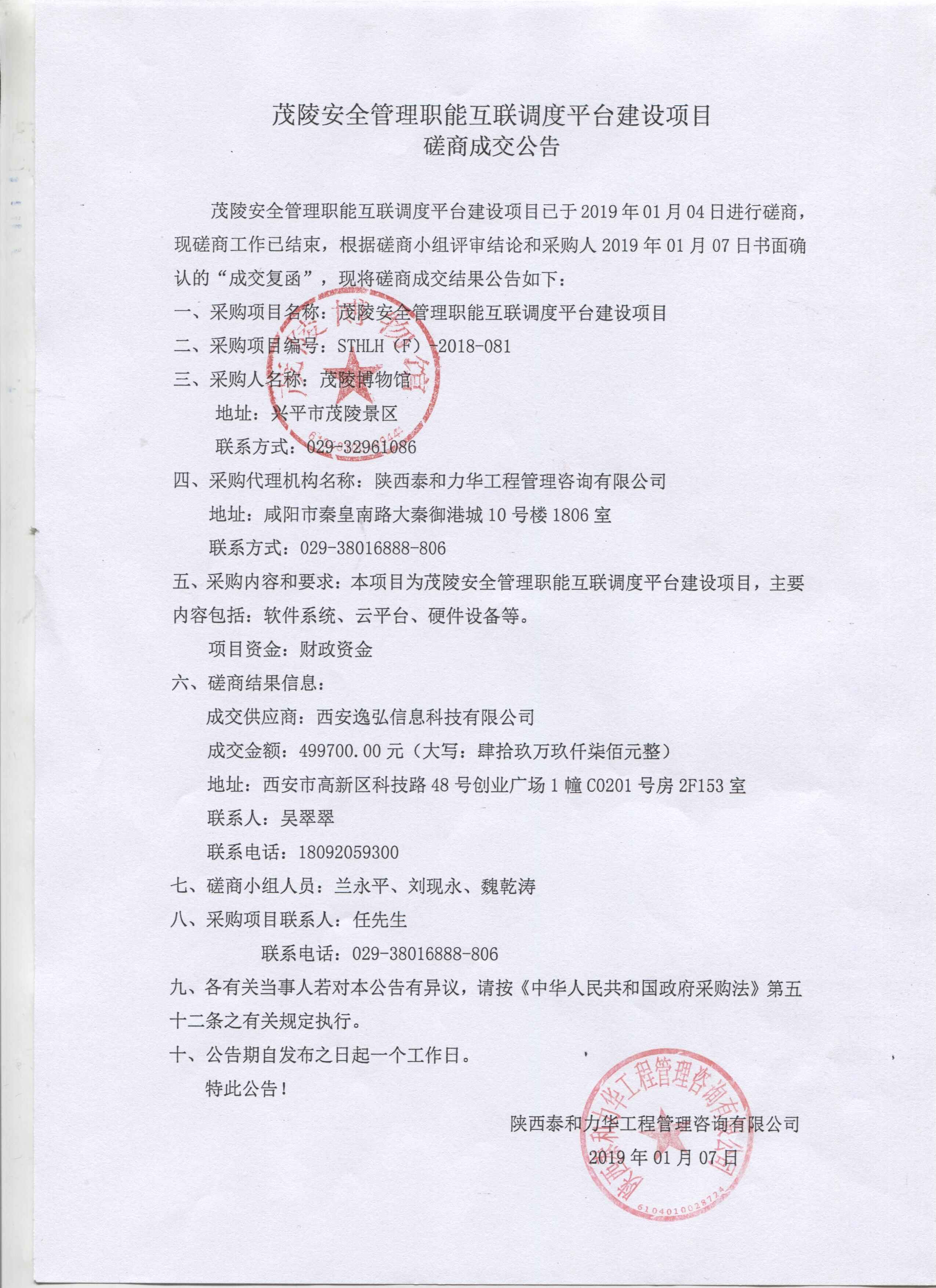 茂陵安全管理职能互联调度平台建设项目磋商成交公告