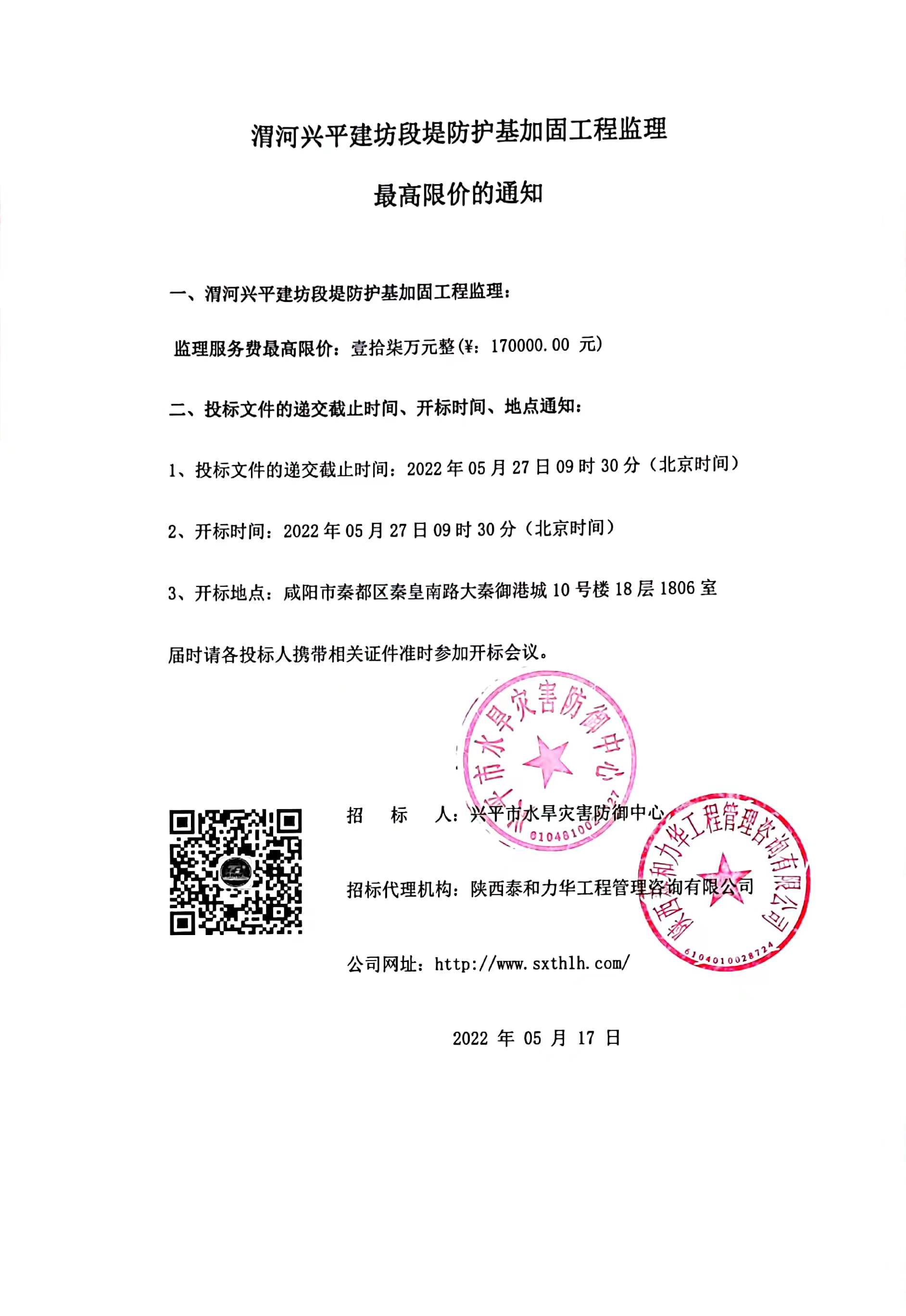 渭河兴平建坊段堤防护基加固工程监理最高限价的通知