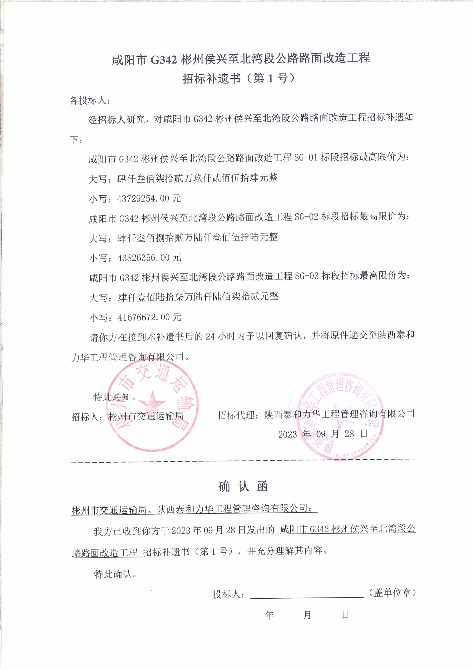咸阳市G342彬州侯兴至北湾段公路路面改造工程施工监理最高限价的通知
