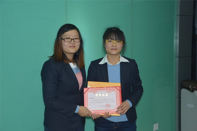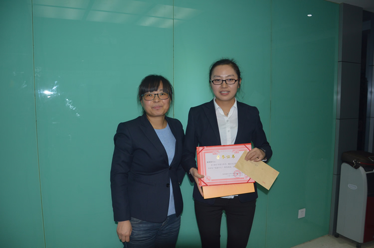 颁奖词:(武优佳)她总看别人,还需要什么;她总问自己,还能多做些什么。她总是将公司的利益放在第一位,不计较个人得失,越简单,越彰显简单的内涵。她虽然在平凡的岗位,却演绎着不平凡的刻骨传奇,小舍小得,大舍大得,感谢她的默默无闻,感谢她的无私奉献,感谢她一直以来的付出。