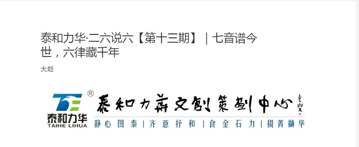 泰和力华·二六说六【第十三期】|七音谱今世,六律藏千年